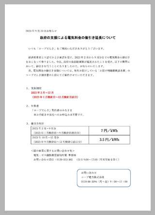 | 重要事項説明書(エフコープ版コープさが版生協くまもと版) | 電気需給約款(エフコープ版コープさが版・生協くまもと版) |