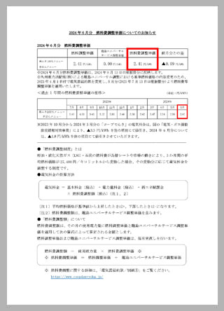 2024年6月分 燃料費調整単価についてのお知らせ
