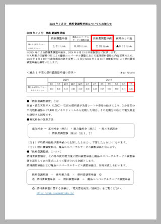 ホーム > 新着情報一覧 > お知らせ > 2024年7月分 燃料費調整単価についてのお知らせ