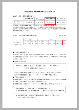 ホーム > 新着情報一覧 > お知らせ > 2024年8月分 燃料費調整単価についてのお知らせ
