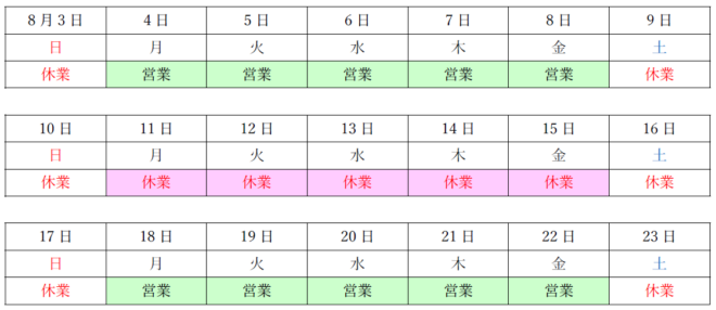お盆期間の営業に関するお知らせ