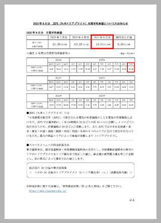 2025年9月分 JPEX(九州エリアプライス)月間平均単価についてのお知らせ