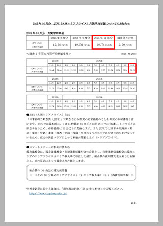 ホーム > 新着情報一覧 > お知らせ > 2025年10月分 JPEX(九州エリアプライス)月間平均単価についてのお知らせ